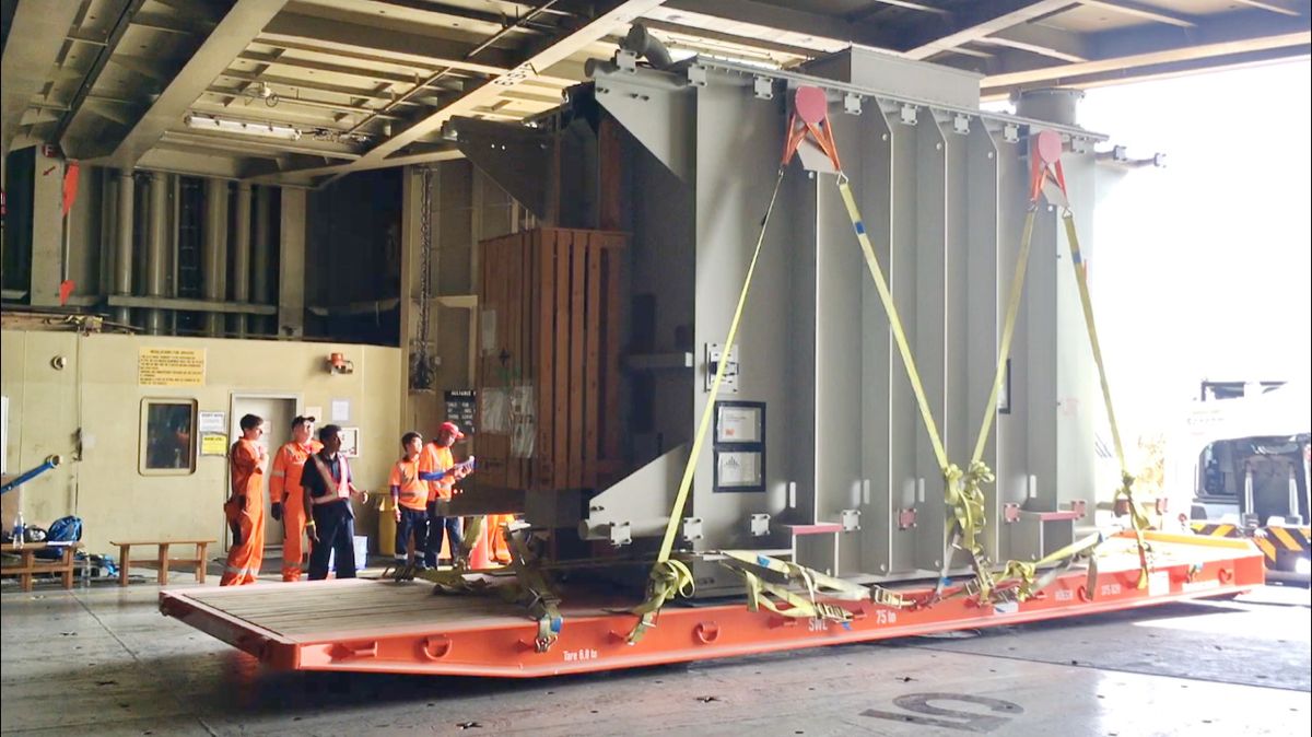 Standing at 4.38m alone, the height of the unit posed a challenge as most of the vessels in the Middle East to Europe service have a door opening of around 5.0-5.2m high. This however was the perfect fit for the Superlow rolltrailer, which could also accommodate the weight of the cargo at 65.8MT.
